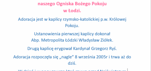 Podczas wakacji w naszym Ognisku Bożego Pokoju w Suchcicach będzie trwał nieustanny wieczernik. Będzie to czas modlitwy połączony z życiem wspólnym według charyzmatu Ogniska Bożego Pokoju. Nauki i homilie pomogą przyjąć dar Bożego Pokoju oraz posługiwać się środkami nadprzyrodzonymi w budowaniu rodziny czy w pracy wychowawczej lub w szkole. Ognisko Bożego Pokoju w Suchcicach płonie cały czas i można tam przyjechać też w ciągu roku. Zapraszamy także całe rodziny z dziećmi.