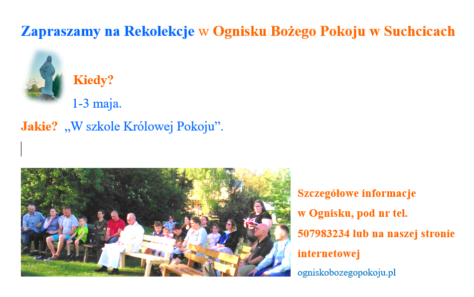 Zakończenie : Godzina Miłosierdzia w niedzielę 3 Maja.