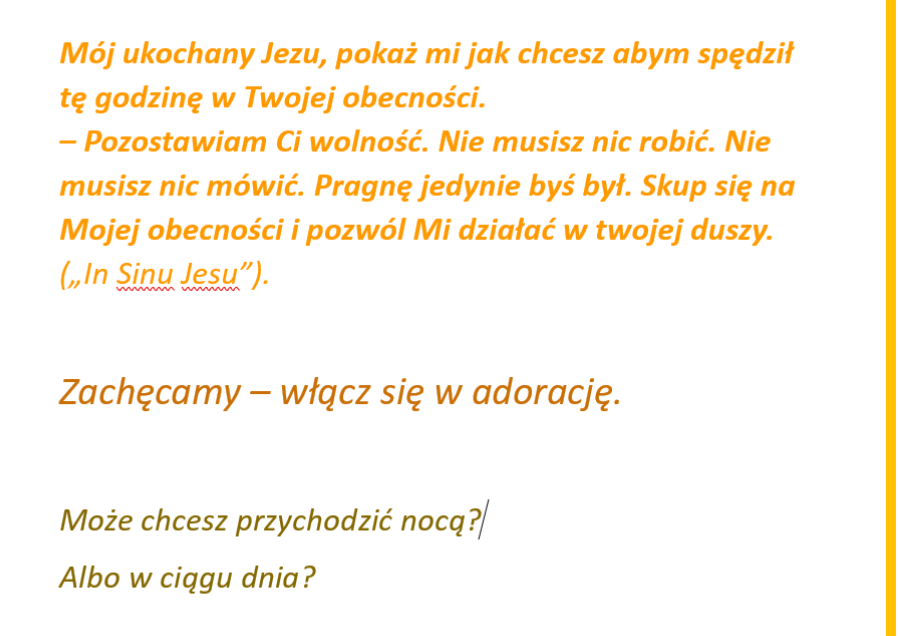 w środku nocy czy „przymyka się oko” na Adoracji, to trwamy, bo wiemy, że jest to wyjątkowy czas, w którym jesteśmy sam na sam